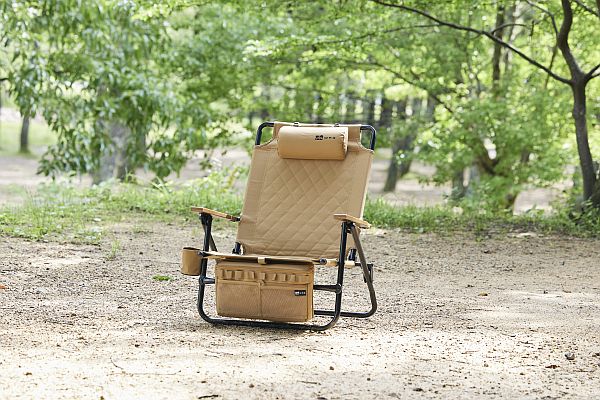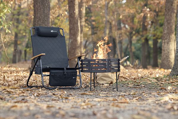 従来のBLACKに加え、TAN/OLIVE/COYOTE/CHARCOALをラインナップし、全5色展開へ拡充。3段階リクライニングで焚き火から読書、星空鑑賞にまで適した角度を選べるほか、断熱ウレタン入りの着脱式ストレージバッグ、キルティング座面、難燃生地など、くつろぎと実用性を両立している。