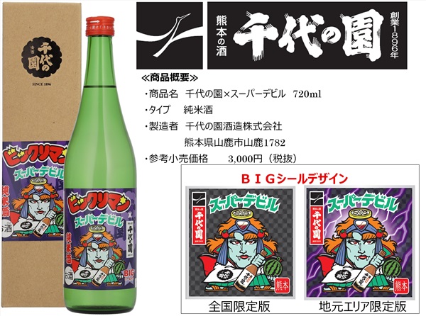 1月30日(金)には、熊本県の千代の園酒造より「千代の園×スーパーデビル」が発売予定。同社取締役の本田裕理氏は、「実際に熊本を彩ったキャラクターを拝見した今は、しっかり熊本をPRしたい、と身の引き締まる思いです。(一部抜粋)」とコメントしている。