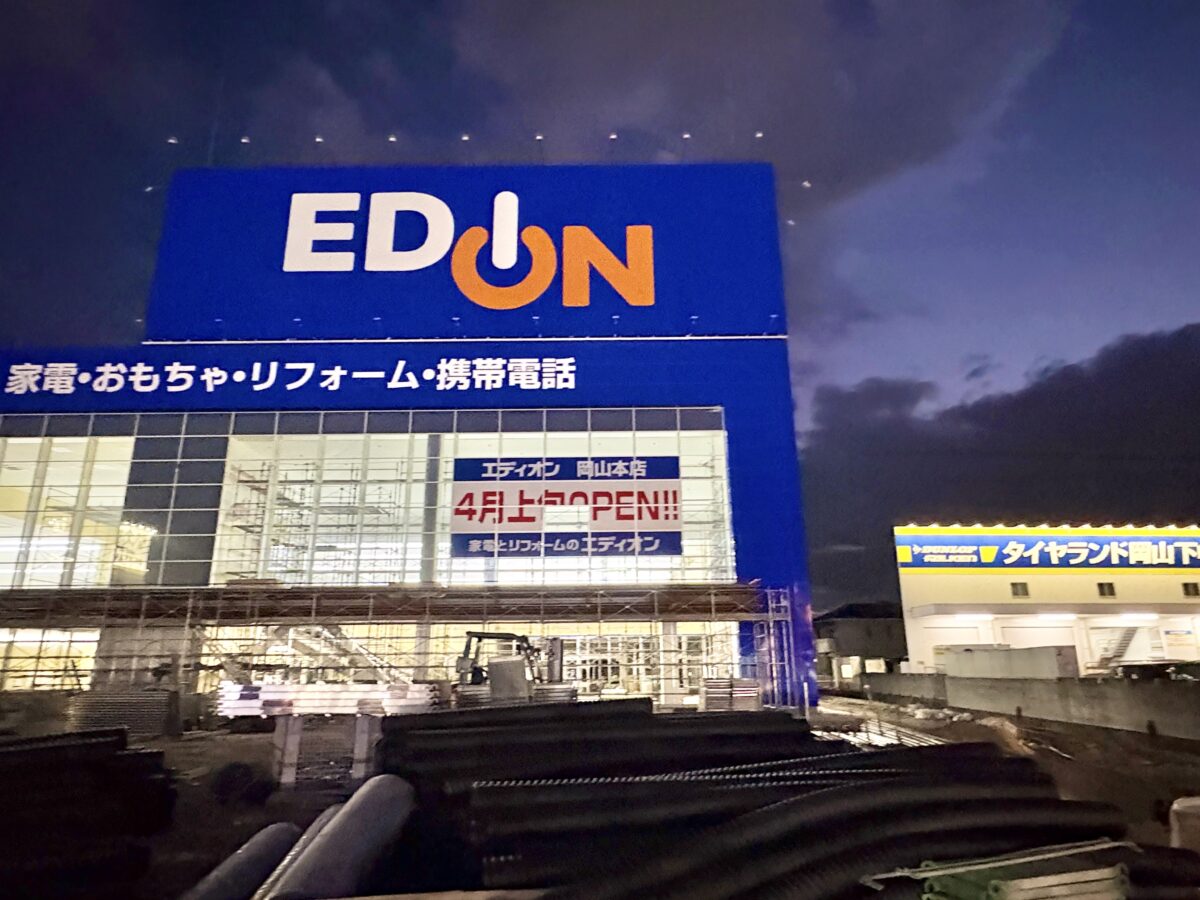 「エディオン 下中野店」からリニューアルしてオープン予定の「エディオン 岡山本店」が出来てきていました。