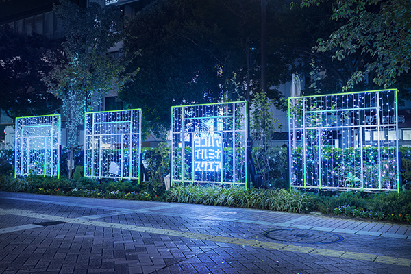 今年は、⼈の動きに街の光・⾳・映像が呼応するインタラクティブな体験型イルミネーションを取り⼊れている。