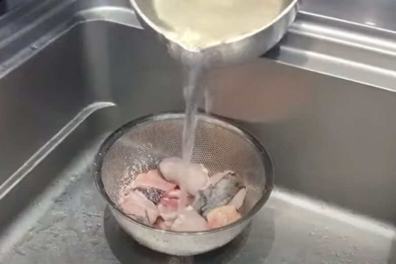 一度さっと茹でこぼして、お湯を沸かした鍋に切った身を入れて、