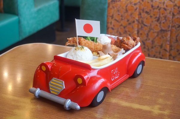 この店の名物のひとつが、「大人も頼めるお子様ランチ」。赤い車型のプレートに、卵ふりかけのご飯、唐揚げ、エビフライ、フライドポテト、ちょこっとサラダが彩りを添える。ドリンクもおもちゃも付いてこないけれど、心はしっかり満たされる。