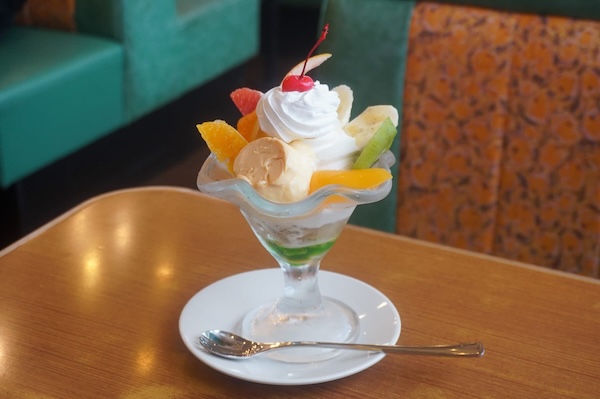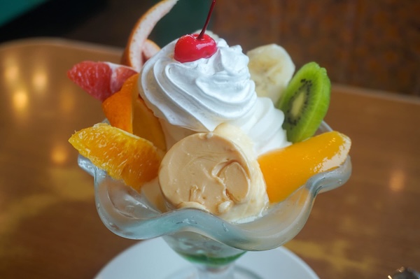 届いたグラスの上には、ソフトクリームとさくらんぼ、生クリーム、そして堂々と鎮座するプリン。下にはフルーツとコーンフレーク、最後には缶詰のみかんがふたつ。甘さとノスタルジーが層になって、思い出まで口にしているような気がした。