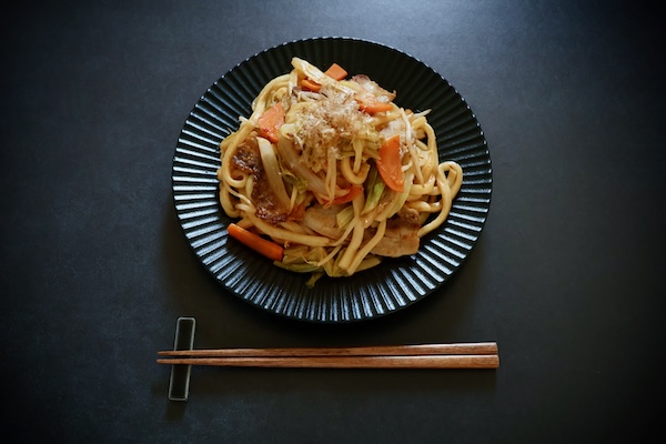 また、豚肉や野菜を炒めて「朱にんにく」を絡めるスタミナ焼きうどんは、コクと辛みが食欲を刺激する一品だ。