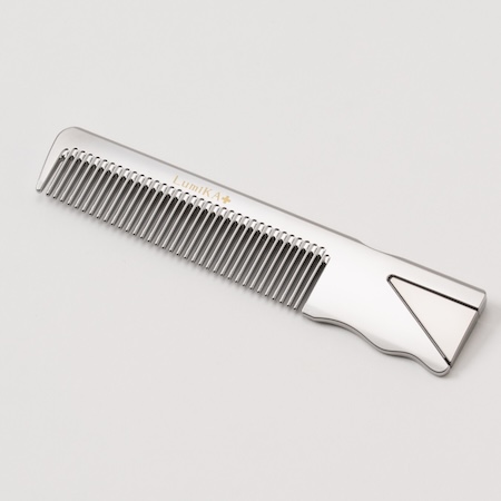コームの目は細かく設計されており、スタイリングの仕上げや前髪のセットなど、繊細な調整が必要な場面で活躍。重量は約13gと軽く、携帯にも便利なポケットサイズのため、外出先での身だしなみチェックにも重宝するだろう。また、その機能性は男性だけでなく、女性の前髪セットなどにも活用可能だ。
