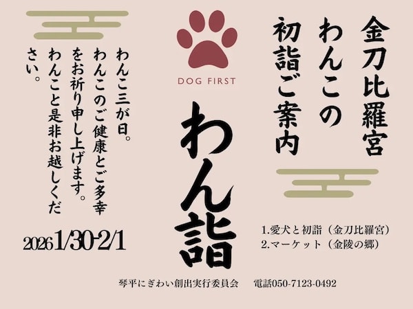 香川県琴平町で、犬と一緒に新年を迎える文化行事「2026年 わん詣〜わんこの三が日〜」が、1月30日(金)〜2月1日(日)の3日間開催される。