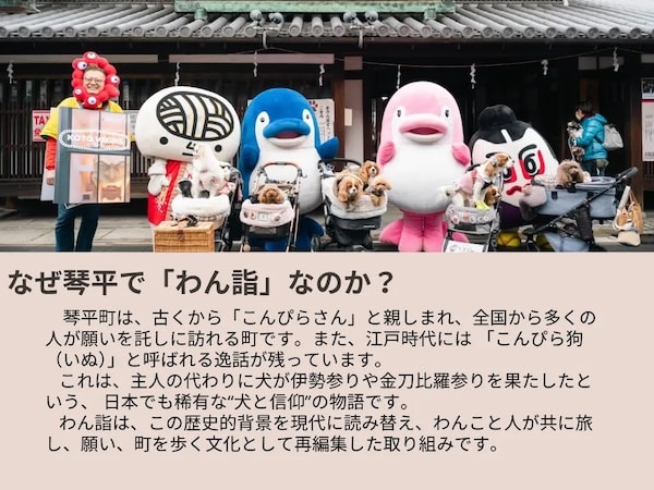 大きなイベント演出ではなく、誰でも、いつでも、無理なく参加できることを大切にし、愛犬と一緒に参拝・町内散策、散歩マップを活用した回遊をする。愛犬の一年を願う「年始の誓い」といった、琴平の日常に寄り添う形で展開する予定だ。