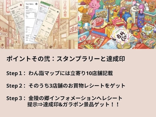 スタンプラリーをして達成印をもらうと、豪華景品が当たるガラポン抽選にも参加できる。
