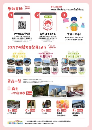 「秩父×川越×さいたま 3市周遊スタンプラリー2025」では、秩父市の寺社、川越市のグリーンツーリズム施設、さいたま市の温泉施設など、各市の話題のスポット15ケ所を設定。