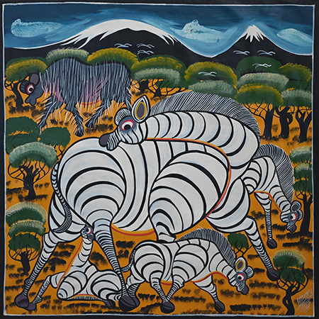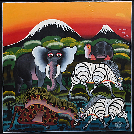 同企画展では、サバンナを駆ける動物たちを色鮮やかに描いたティンガティンガ絵画を紹介する。