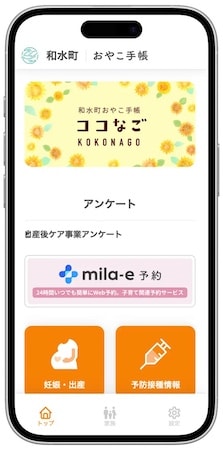 熊本県玉名郡の和水町では、「ミラボ」が開発する自治体向けサービス・母子手帳アプリ「mila-e(ミライー) おやこ手帳」、オンライン予約サービス「mila-e 予約」を導入し、1月14日(水)より運用を開始した。