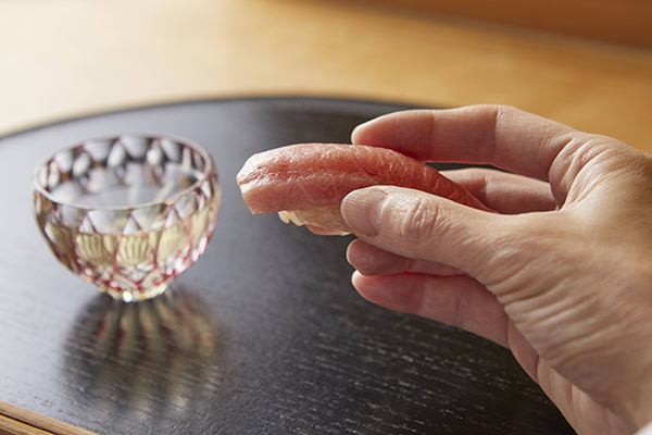 美しく輝く、本鮪の濃厚な旨みを引き出す。真鯛白子、本鮪など、現地で目利きした魚介の逸品、雲丹と鮑の「いちご煮」などの郷土料理などを味わえる。ただし、当日提供されるメニューは、漁の状況等によって変更される可能性がある。