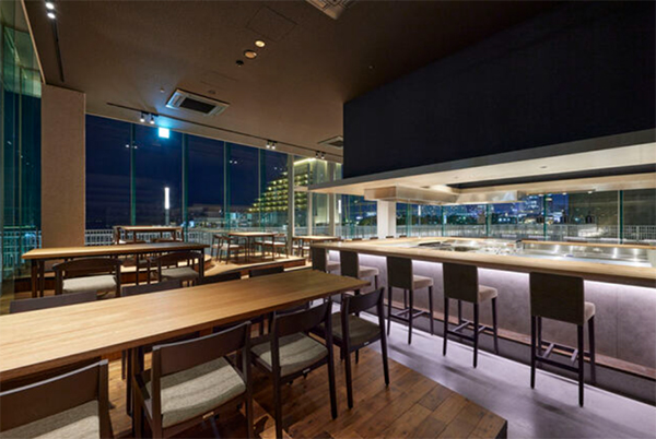 「sincro」は、ウォーターフロントの夜景を大きな窓一面に望む特別な空間が広がるレストランだ。