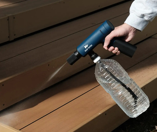 高圧洗浄機は大型で、準備に時間がかかり、水源や電源が必要、という前提を覆した、どこでも洗える自由を“スマホサイズ”で持ち運べるアイテムだ。