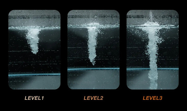 5パターンのノズルにより、水流を自在にコントロールすることができる。