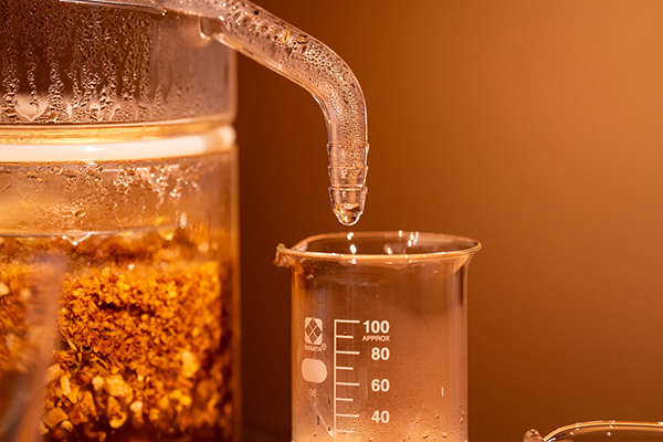 植物の香りが、熱と時間を通して少しずつ液体として集まっていく蒸溜の工程。