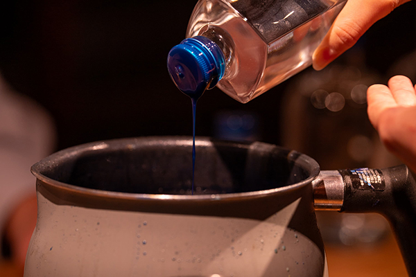 上の写真は、蒸溜を終えた液体を小瓶に詰め、ロウ付けを施す体験教室の仕上げの工程だ。