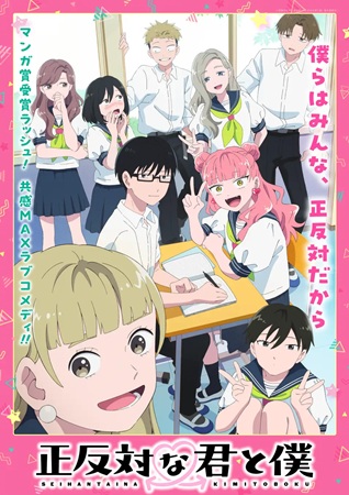 TVアニメ『正反対な君と僕』は、MBS/TBS系全国28局ネットで毎週日曜午後5時〜放送。ABEMA、Prime Videoで毎週日曜午後5時30分〜最速配信している。