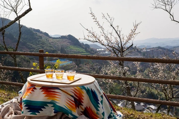 梅の花と絶景をつまみに梅酒をたのしむ「梅酒テラス」