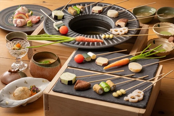 長崎県東彼杵町の温泉宿「そのぎ茶温泉 里山の湯宿 つわぶきの花」では、宿泊客自らが旬の野菜を卓上で揚げて完成させる新名物料理「里山の旬菜 菜種揚げ(なたねあげ)」を味わえる。