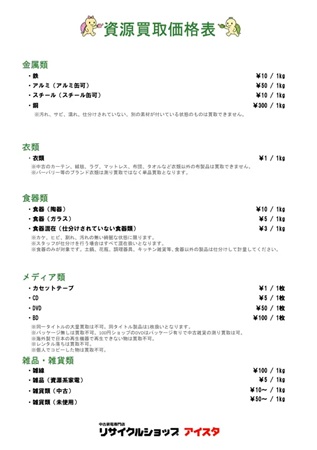 資源の買取価格表
