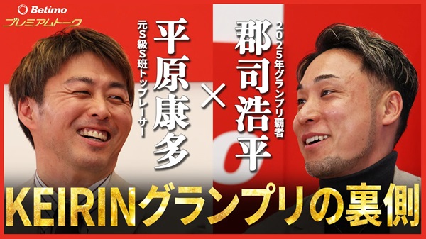 「Betimoプレミアムトーク」の記念すべき第1回は、KEIRINグランプリ2025覇者(2025年賞金王)の郡司浩平選手と、番組メインナビゲーターの平原康多氏による対談が中心。郡司選手が「KEIRINグランプリ2025」制覇までの思考や舞台裏を自身の言葉で振り返る。