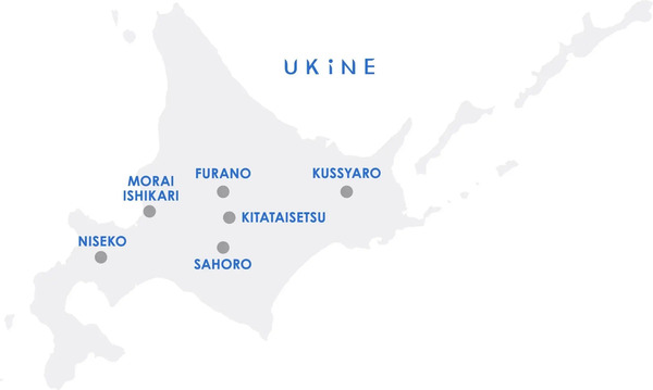 「UKiNE」の今後の構想として、四季を通して楽しめるマウンテンリゾート「UKiNE SAHORO(サホロ)」、花と丘、アートと美食が融合する「UKiNE FURANO(富良野)」、グローバルな感性を持つゲストが集う、国際的フォースプレイス「UKiNE NISEKO(ニセコ)」、手つかずの自然が残る山岳リゾート「UKiNE KITATAISETU(北大雪)」、都市近郊にありながら、自然との対話が叶う新たな隠れ家「UKiNE MORAI ISHIKARI(石狩モウライ)」を展開予定。