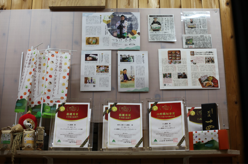 アパレル出身ならではの洗練されたパッケージと、泥臭いまでの現場主義。「のら農園」のドライフルーツ一袋には、山形の豊かな実りと、一人の男の熱いプライドが凝縮されています。また、ドライフルーツを用いた菓子「さくらんぼサンド」「プレミアムさくらんぼアイスケーキ大福」を次々と開発し、こちらもコンテストを受賞するなど益々勢いを増しています。