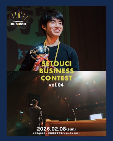 「第4回せとうちビジネスコンテスト」が2月8日(日)にエストパルク(広島県民文化センターふくやま)にて開催される。全国36チームのエントリーから選ばれたファイナリスト10組が、瀬戸内地域の課題解決に挑むビジネスプランを発表。今回のファイナリストは学生チームが中心。多文化共生、里山観光、不登校の子どもたちへの居場所づくりなど、若い視点から生まれた多彩なアイデアが揃った。当日は来場者投票による「オーディエンス賞」も実施し、投票者から抽選で10名にオリジナルTシャツがプレゼントされる。観覧は無料だ。