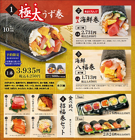三つ目は、多彩なラインナップ。4種の恵方巻が、節分の特別な一日を演出する。