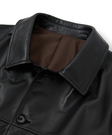 春の新作レザーアイテム「ライトラムレザー カバーオールブルゾン」110,000円(税込)は、極薄0.5mmまで丁寧に仕上げたラムレザーが生む、驚くほど軽やかな着心地。