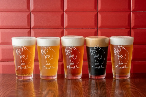 箕面ビールは毎日5種を樽生で提供。