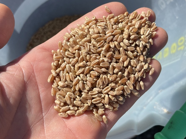 同じ土地で育つ小麦の話を、生産者と共有する西方さん