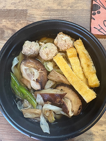 越谷市の「手打ちうどん うちだや」は、保存料・添加物を一切使用していない、伝統的な「武蔵野うどん」を味わえる店で、名物は伝統の肉とねぎを使ったつけ汁うどん。自家製のつゆ、小麦粉から野菜まですべての食材が埼玉県産というこだわりようで、今回提供するのは、「きのことりだんごうどん」。伝統的な「武蔵野うどん」は初めてという人に、まず食してほしい一品である。