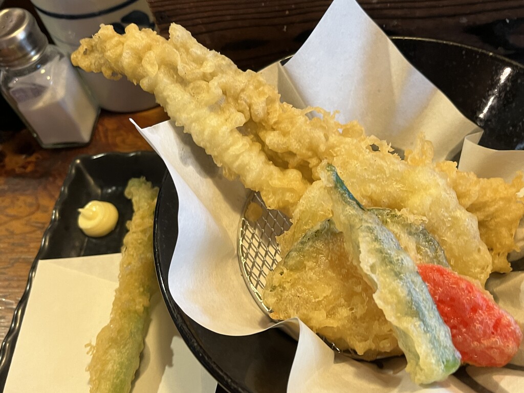 大海老天2本と本日のおすすめネタの天ぷら盛り合わせです♪