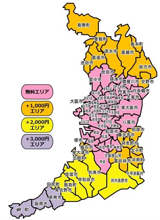 今回、宅配料金無料化の対象となったエリアは、大阪府の大阪市全域と堺市全域。1月1日(木)より、指定場所への配車・引き取り料金を無料化している。