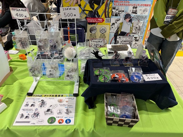 また同会場に作家ブースも設置し『ラブ・フラット』のアクリルキーホルダー、缶バッジ、マンガカットアクリルキーホルダー、貼り付けられるアクリルスタンドといったオリジナルグッズを販売した。