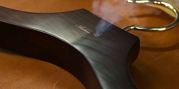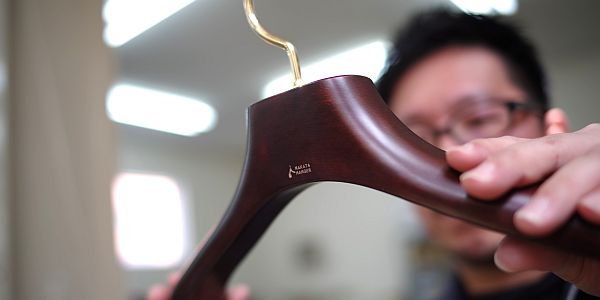 職人の技によって1本1本生み出されるハンガーには「ふくをかける」という想いとともに「服だけでなく幸福もかける」という願いが込められている。