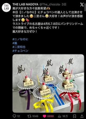 4月に控える「嵐」のライブ時のプレート案。Xにて話題に