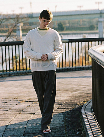 繰り返される通勤風景を舞台に、私的な自分から社会的な役割へと移る直前の、曖昧で繊細な感情の揺らぎを描写。郊外から都心へ向かう途中や、駅の入口にある鏡の前で、無意識に身だしなみを整える一瞬に映し出される、まだ完成しきらないニュートラルな状態の美しさ。緩く結ばれたネクタイや、風に揺れるコートの裾といった小さなディテールが、言葉にされない感情や、その日一日への向き合い方を静かに物語る。