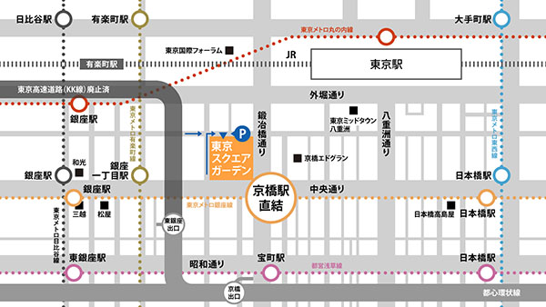 会場となる「東京スクエアガーデン」は、東京メトロ銀座線「京橋」駅に直結し、JR「東京」駅や銀座エリアも徒歩圏内という抜群のアクセスを誇る大規模複合ビルだ。