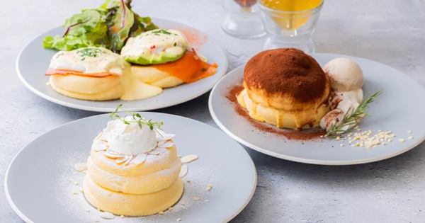 「ハニーパンケーキ」単品1,200円(税込)、「ティラミスパンケーキ」単品1,580円(税込)、「エッグベネディクトパンケーキ」単品1,680円(税込)