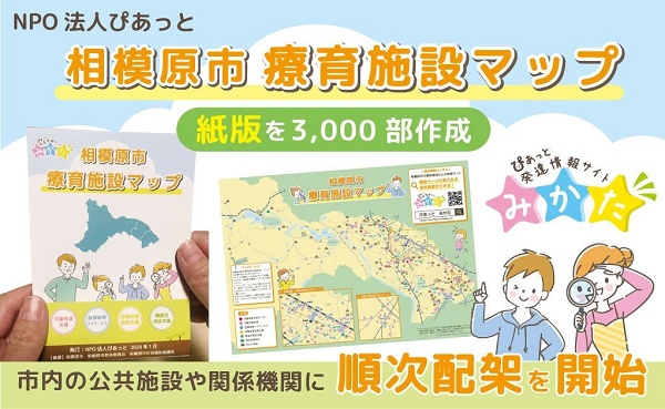 ぴあっとは、相模原市内の療育施設を一覧で確認できる「相模原市療育施設マップ・紙版」を3,000部作成。市内の療育施設や関係機関で順次配架を開始した。
