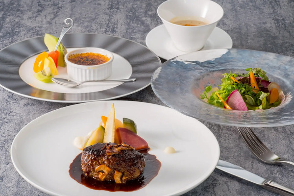 「フルコース(7品)」11,000円は、前菜、魚料理、肉料理、デザートなどシェフのこだわりを堪能できる贅沢なコース、「セゾンコース(5品)」6,600円は、季節の食材を中心に構成されたショートコース、