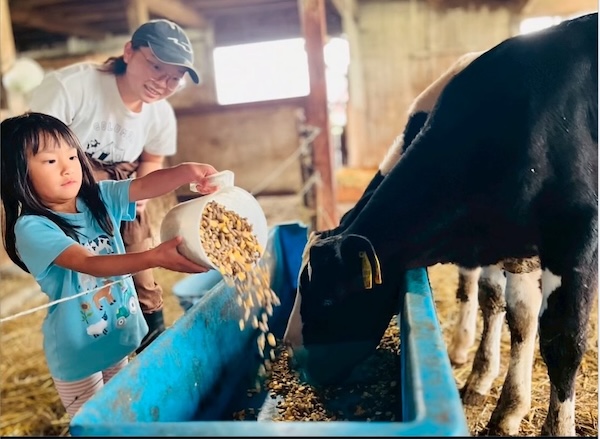 子どもにとっては、牛の体温に触れる初めての記憶として、大人にとっては、日常の食の背景を見直すきっかけとなる体験ができる。また牧場では、オリジナル製品を購入することもできる。
