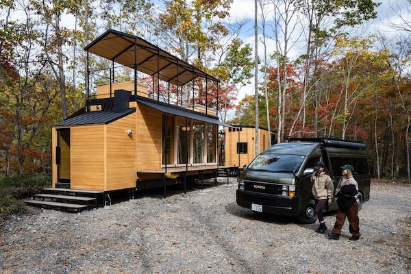 「Moving Inn Tokachi 北の森」は、2023年に北海道十勝で開業。ホテルを建てることができないほど自然が残る場所に設えた移動式の客室で、自ら火を起こし、湯を沸かし、料理をする。日常の延長にある行為を、自然の中で丁寧に味わう時間を提案している。また、新千歳空港を起点としたキャンピングカーの受け渡しにも対応し、移動から滞在までを一体で楽しめる旅のかたちを広げている。