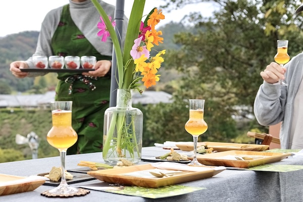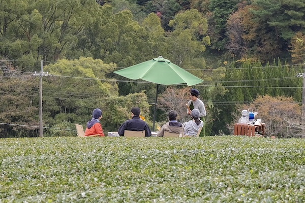 霧山茶園で実施される「日本茶インストラクターと味わう 絶景!土佐茶寮」1グループ22,000円は、茶畑の絶景を前に、インストラクターが淹れる上質な土佐茶と季節のスイーツを楽しめる特別なプログラムだ。