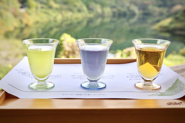 茶農家の店あすなろでは、1日限定10人の「オリジナル氷出し茶3種飲み比べとあすなろ御膳ランチ」1人2,900円を用意。仁淀川の絶景とともに、沢渡茶の氷出しと地元の恵みを活かしたランチを楽しめる。