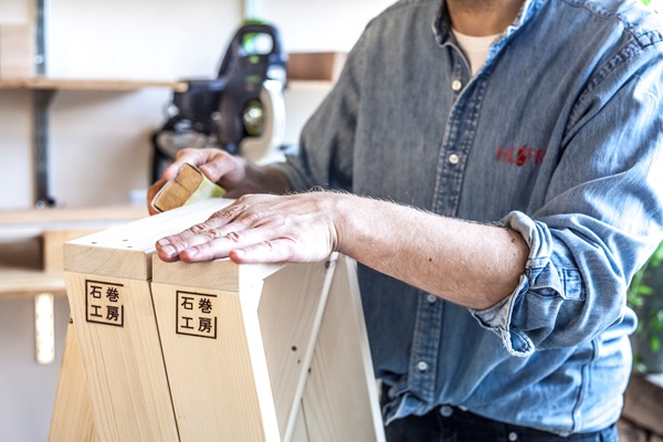 利用できる素材の特性や必要とされる構造をていねいに読み取り、使われる状況や人との関係を想像しながら、家具というかたちにしていく。石巻で培われたこの考え方は、さまざまな土地や人との関わりのなかで受け継がれ、それぞれの環境に応じたかたちへと展開してきた。