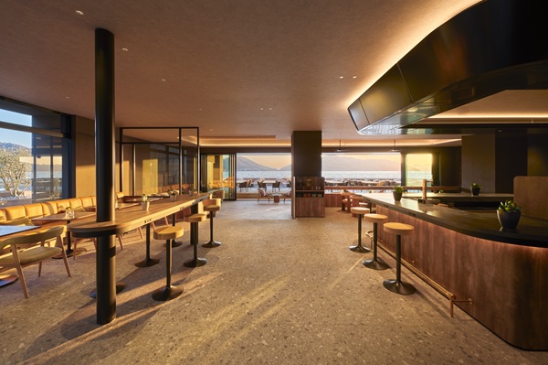 edit x seven 瀬戸内小豆島 1Fにオープンする「Restaurant edén SETOUCHI」は、朝食からディナーまで、小豆島の旬の魚介や島野菜、オリーブ牛、オリーブハマチなど、島の風土に根ざした食材を生かし、一日を通して楽しめる食の体験を提供する。